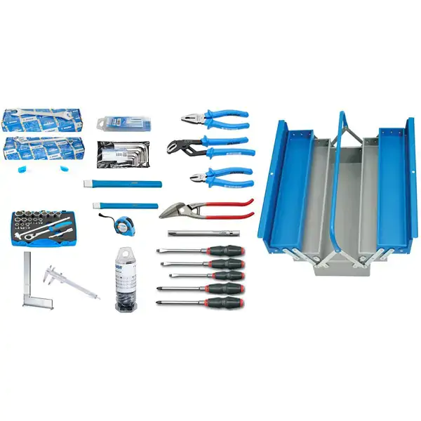 • Unior garnitura od 71 bravarskog alata u petodelnoj metalnoj kutiji predstavlja sveobuhvatan profesionalni set za opštu upotrebu – i to na promociji tokom cele godine! Ovaj komplet težine 19,286 kg namenjen je bravarima, serviserima, mašinskim radionicama i svim majstorima koji zahtevaju kvalitet i pouzdanost. Set obuhvata iglu za obeležavanje (1279), pomično merilo INSIZE sa podelom od 0,05 mm (1205-150S), kombinovana klešta (608676) i papagaj klešta (620558). Za rad sa zavrtnjevima tu su imbus ključevi u plastičnoj futroli (220/3PB), nasadni ključevi sa prihvatom 1/2" u plastičnoj kutiji (190BI6P17) i komplet od 12 okastih ključeva u dimenzijama od 6x7 do 27x32 mm (600542). Set uključuje i univerzalne makaze za lim (563R/7P), mernu traku (612790), EGA Master udarne odvijače (krstaste i ravne), probojce u garnituri (646A), dva pljosnata sekača za metal (601733, 601734), set od 6 izvlakača polomljenih vijaka (778/4PB), sečice kose (608698) i ugaonik sa naslonom (617157). Svi alati su smešteni u robusnu petodelnu metalnu kutiju koja omogućava preglednu organizaciju i dugotrajnu zaštitu. Sa 71 alatom, ovo je potpuno opremljena bravarska radionica u kutiji!