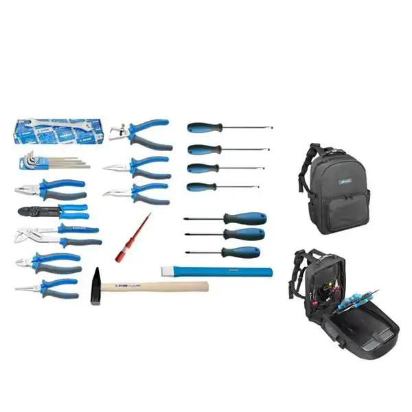 • Predstavljamo vam garnituru od 35 UNIOR alata u rancu za alat i laptop Move od otpornog poliestera, kompaktno i veoma funkcionalno rešenje za opštu upotrebu u svim vrstama poslova. Ovaj praktični komplet uključuje viljuškaste ključeve različitih dimenzija, imbus ključeve na plastičnom držaču, kombinovana klešta, klešta za kablovske papučice, klešta papagaj, sečice kose, okrugla klešta, klešta za skidanje izolacije, špicasta klešta prava i savijena, komplet pljosnatih i krstastih odvijača, ispitivač napona, pljosnati sekač za metal i bravarski čekić. Sve je smešteno u ranac Move od otpornog poliestera koji izdržava svakodnevno korišćenje, a dizajniran je tako da istovremeno primi alat i laptop, što ga čini idealnim za majstore, tehničare, servisere i sve koji često putuju ili rade na terenu. Set je tokom cele godine na povoljnoj promociji, a ukupne težine 6,18 kilograma predstavlja izbalansiran odnos kompletne opremljenosti i lakoće nošenja.
