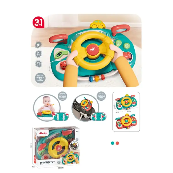 • Bebi volan sa zvukom i svetlom zabavna je interaktivna igračka koja podstiče maštu i koordinaciju najmlađih, pretvarajući svaki izlazak ili vreme kod kuće u pravu vozačku avanturu. Može se lako pričvrstiti na kolica (pomoću čičak traka, kopči ili omči) ili na stolicu za hranjenje, što je čini idealnom za igru kod kuće ili tokom šetnje parkom, ulicom ili tržnim centrom. Svetlosni i zvučni efekti – farovi koji svetle, zvuk motora, truba, signal za vožnju unazad, možda i pesmice – dodatno privlače pažnju deteta i pretvaraju svaku vožnju u veselu avanturu. Volan ima dugmad koja dete može da pritiska (za svetlo, zvuk, melodije), a može imati i ugrađeno ogledalce, okretne zupčanike ili klizne prekidače. Okretanje volana proizvodi zvuk (klik ili šuštanje) i razvija finu motoriku. Dimenzije pakovanja su 22.3 x 8 x 18.5 centimetara. Igračka je izrađena od bezbedne, čvrste plastike, sa zaobljenim ivicama. Baterije su uključene ili nisu (proveriti). Savršena za bebe od 6 meseci naviše (proveriti preporuku proizvođača). Podstiče uzročno-posledično razmišljanje (pritisak -> svetlo/zvuk), finu motoriku (hvatanje, okretanje), koordinaciju, maštu (oponašanje vožnje), i pruža utehu i zabavu dok je beba u kolicima ili stolici.