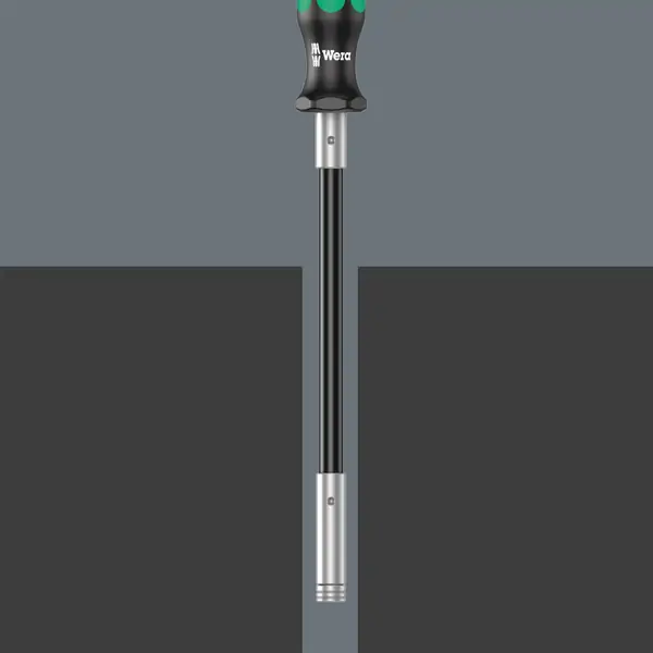 • U osnovi seta je ekstra tanak odvijač 393 S sa fleksibilnom osovinom, koji omogućava rad čak i kada je pristup direktno vertikalan ili pod oštrim uglom. Opremljen je jakim trajnim magnetom i mehanizmom za sigurno držanje bitova, što sprečava ispadanje tokom rada. Držač je izrađen od nerđajućeg čelika, otporan na koroziju i mehanička oštećenja.