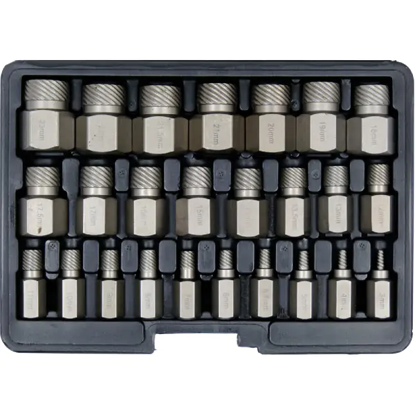 • Raznovrsnost: Set sadrži različite tipove i veličine nastavaka, omogućavajući rad sa širokim spektrom oštećenih šrafova.