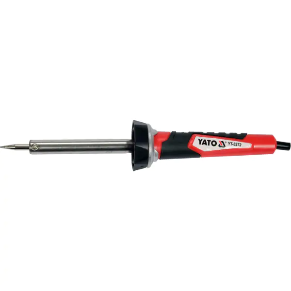 • YATO štapna lemilica od 60W model YT-8272 predstavlja pouzdano, robusno i bezbedno rešenje za profesionalno i amatersko meko lemljenje u elektronici, električarskim poslovima i opštim zanatskim radovima. Sa radnom temperaturom do 430°C (maksimalno 500°C) i izuzetno brzim zagrevanjem od samo 2,5 minuta, ova lemilica je spremna za akciju u trenu, dok njen vrh od visokokvalitetnog presvučenog bakra (Ø5,8 x 85 mm) obezbeđuje optimalno akumuliranje i disipaciju toplote, idealno za lemljenje bakarnih žica, elektronike u tehnologiji kroz rupe ili za veća polja za lemljenje. Sa životnim vekom vrha preko 60 sati, dugotrajna pouzdanost je zagarantovana. Ključnu bezbednost obezbeđuje utikač sa uzemljenjem direktno povezan sa metalnim kućištem, eliminišući rizik od električnog udara, dok dvokomponentna, protivklizna drška pruža udoban i siguran hvat. Redovno održavanje putem kalajisanja vrha pre prvog korišćenja i nakon rada održava njegovu efikasnost i sprečava oksidaciju. Ova lemilica je neophodan alat za svakog elektroničara, električara, modelara ili hobi majstora koji traži jednostavnost, brzinu, sigurnost i visoke performanse u svakodnevnom radu.