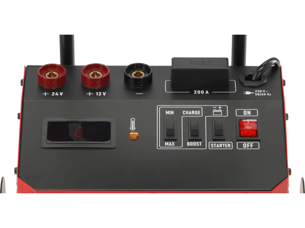 • Profesionalni YATO punjač-starter dizajniran je za sigurno i efikasno upravljanje olovnim akumulatorima u svim tipovima vozila i radioničke opreme, nudeći dve ključne funkcije u jednom pouzdanom uređaju. Za režim punjenja, pruža fleksibilnost sa naponskim pragovima od 12 V i 24 V i podešljivim strujnim nivoima od 10 A, 25 A do 42 A, omogućavajući optimalno i brzo punjenje baterija različitih kapaciteta, od 20 do 800 Ah, čak i kada su potpuno ispražnjene (sa radnim naponom >0 V). Za hitne situacije, režim startovanja nudi moćnu prekidnu struju od 420 A (sa radnim ciklusom od 3 sekunde rada i 120 sekundi pauze), pružajući pouzdan brzi start motora čak i pri niskim temperaturama ili kod veoma slabih baterija. Bezbednost i dugovečnost su osigurani automatskom kontrolom temperature koja sprečava pregrevanje i IP20 zaštitnom klasom, čineći ga pogodnim za rad u suvim, zatvorenim prostorima poput servisa i radionica. Uređaj je opermljen kablovima sa krokodil klipsama za bezbedno povezivanje i projektovan je za rad u temperaturnom opsegu od 0°C do +40°C, garantujući celogodišnju upotrebu. Strogo poštovanje pratećih bezbednosnih uputstava, poput isključivanja iz mreže pre spajanja, držanja dalje od varnica i obezbeđivanja ventilacije, čini ovaj punjač-starter ne samo izuzetno moćnim, već i sigurnim izborom za svakog profesionalca.
