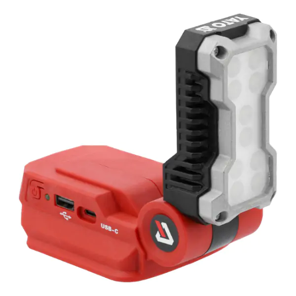 • Dizajn je optimizovan za maksimalnu otpornost: kućište od ojačanog plastičnog kompozita PA6-GF30 sa aluminijumskim okvirom i transparentnim, otpornim PC poklopcem štiti LED diode od udaraca i vibracija. Ključnu praktičnost donosi funkcija powerbank-a sa dva USB porta (Type-C i standardni) za punjenje mobilnih uređaja u terenskim uslovima. Lampa se napaja standardnom YATO 18V Li-Ion baterijom (nije uključena), što je čini kompatibilnom sa celokupnom 18V platformom, dok podesiv nagib glave omogućava tačno usmeravanje svetlosti.