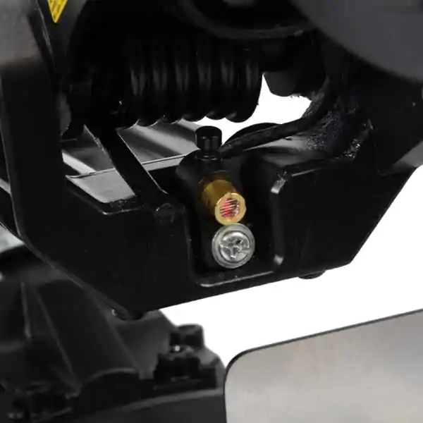 • Testera je opremljena laserskim pokazivačem koji jasno prikazuje liniju reza na materijalu postavljenom na sto. Laser se uključuje posebnim, nezavisnim prekidačem.